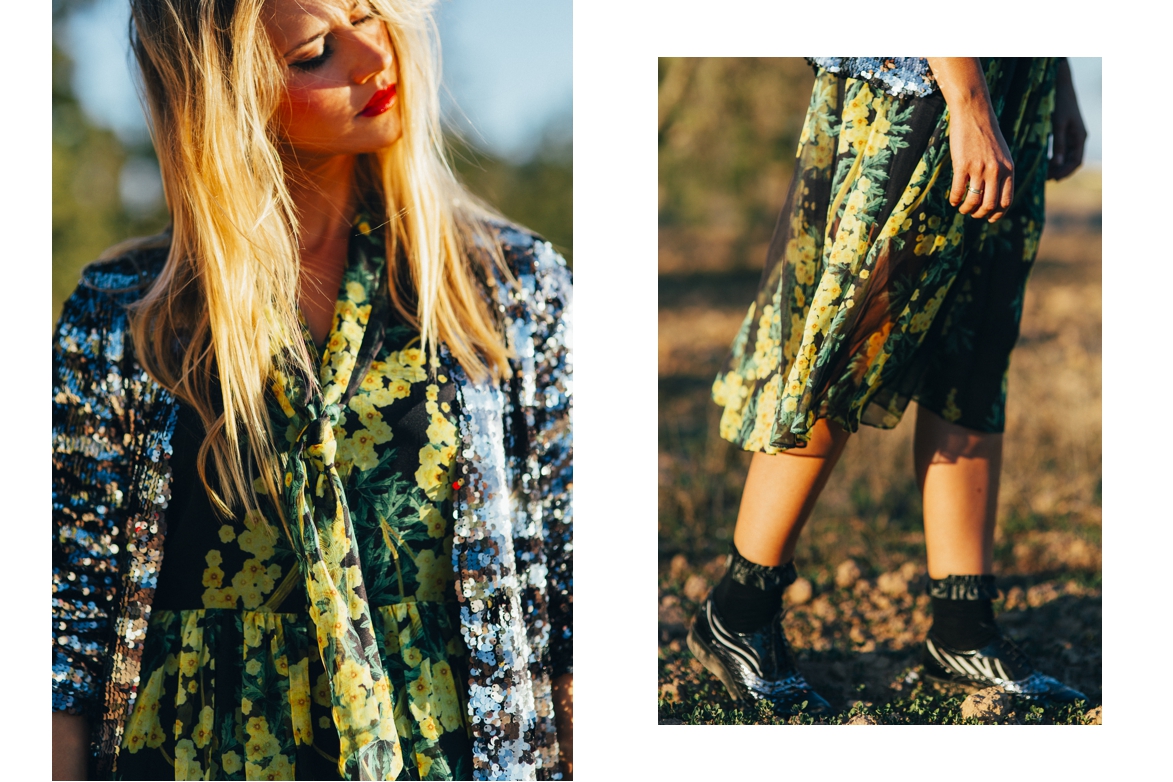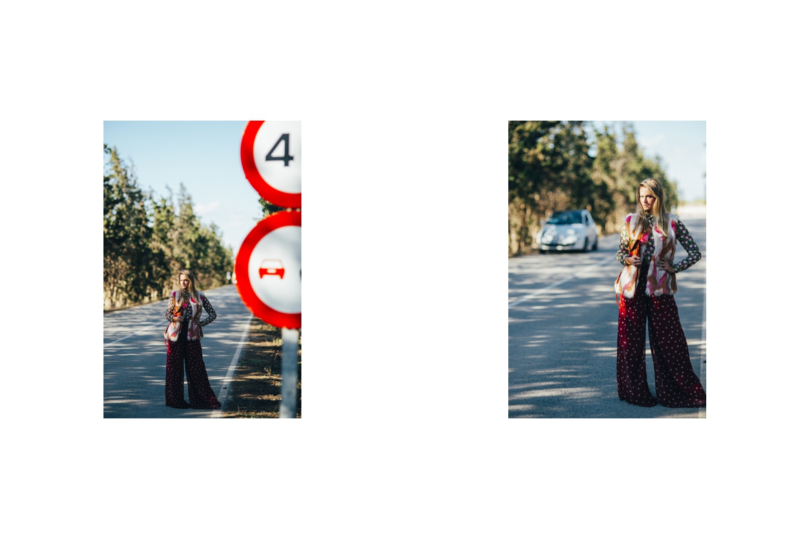 “Free Romance” es el título que tiene la que veréis a continuación, en esta editorial quería demostrar con Secu (modelo) rebeldía, libertad y pasión por amar. Una chica que vive así la vida, sin preocuparse de lo que dirán, elegir la ropa que debe llevar, crear ella misma sus prendas para vestir y la vida que debe llevar. Si le apetece ponerse flores con strass hacerlo! Si quiere llevar un chaleco de pelo y un pantalón de lunares que lo haga!! Cristina Gómez me dejó la ropa para hacer estos fabulosos estilismos, junto con otros complementos de otros diseñadores cree justo lo que buscaba. Mi intención era romper con todo, mezclar flores con brillos, pelo y lunares, estampados y por último la creación del tocado con flores y un pájaro, justo lo diseñé para estas fotos.